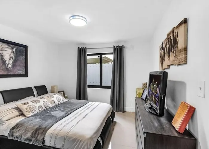 Dit pension ligt ongeveer 1 km afstand van de winkels in Midtown Miami en binnen 4 km van de Bayside-markt. Het hotel is binnen 25 minuten loopafstand van de Miami Design District in Miami. De Northwest 7th Avenue & Northwest 53rd Street bushalte is niet ver van Vibrant Miami Living- Buena Vista Vacation Home Close To Beaches, Wynwood More.